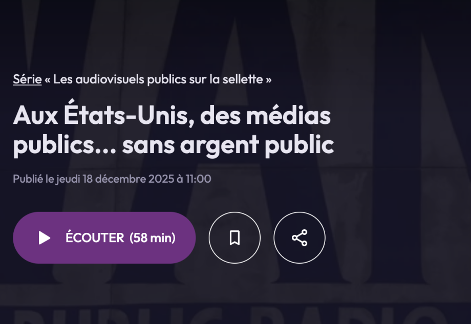 Anaïs Le Fèvre-Berthelot était l’invitée de « Cultures Monde » le 18 décembre 2025 pour une émission consacrée à l’audiovisuel public aux États-Unis, à son histoire et aux attaques dont il fait l’objet. L’émission est à (ré)écouter ici.