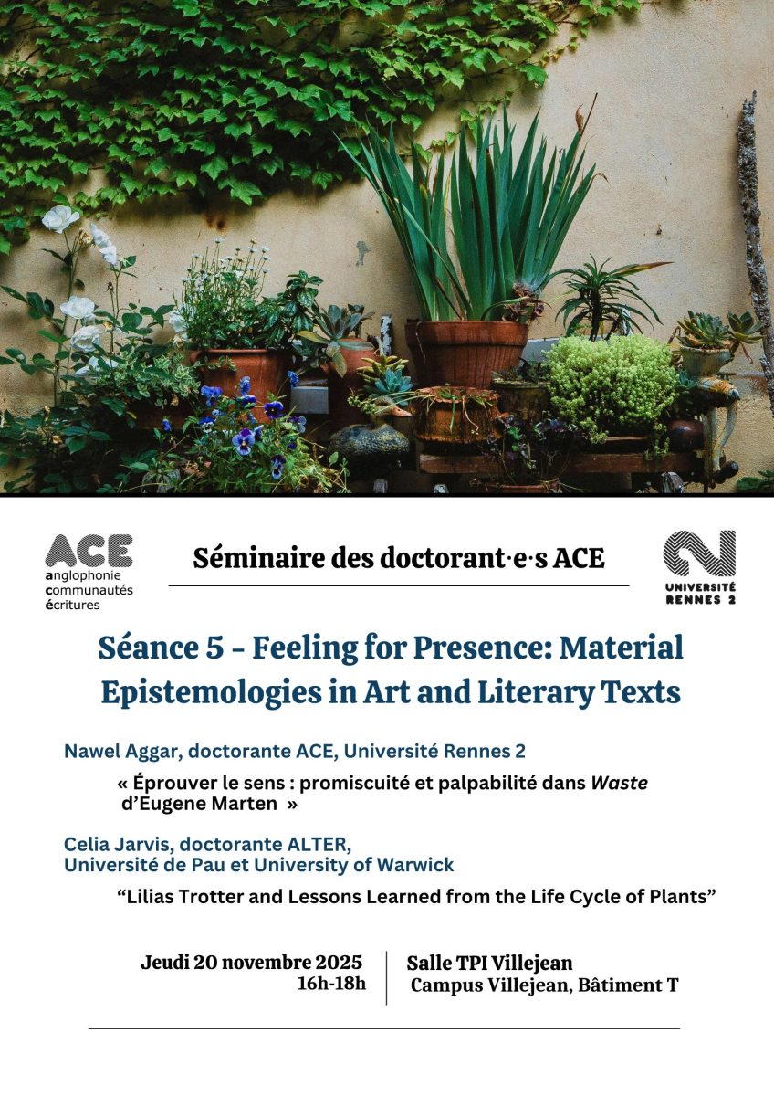 Séance 5 : « Feeling for Presence: Material Epistemologies in Art & Literary Texts »