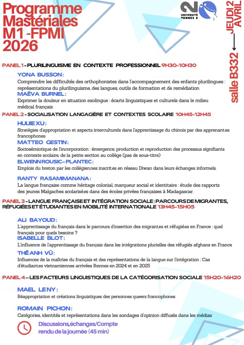 PANEL4– LES FACTEURS LINGUISTIQUES DE LA CATÉGORISATION SOCIALE 15H20-16H20